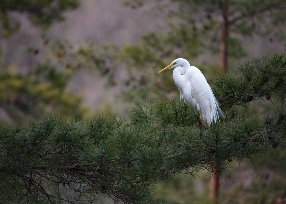 写真は京都・宝ヶ池公園。桜の森がピンクに染まる頃。しらさぎも待っています。